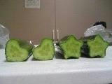 切っても切ってもハートと星です。正直、馬鹿の道楽としか言えませんが、面白いので買って遊びました。ちなみに値段は普通のキュウリよりも20円高かったです。